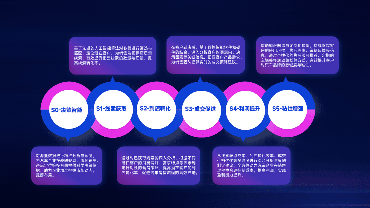 通过拓宽潜在客户来源、、、优化线索分配并提高到店转化率,,,,以增强销售效率。。同时,,,,利用线索数据不断优化分析模型,,有效提升转化率,,扩大营销影响力。。。